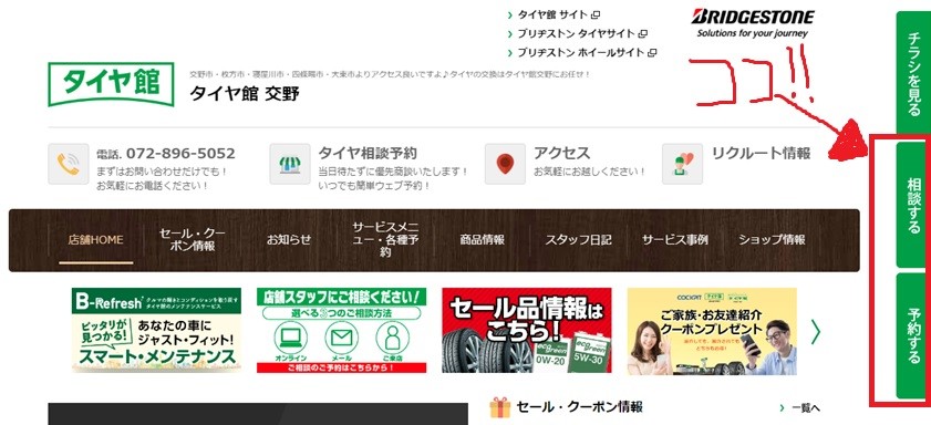 パソコンからですと、当店ホームページの右側に出ている予約…