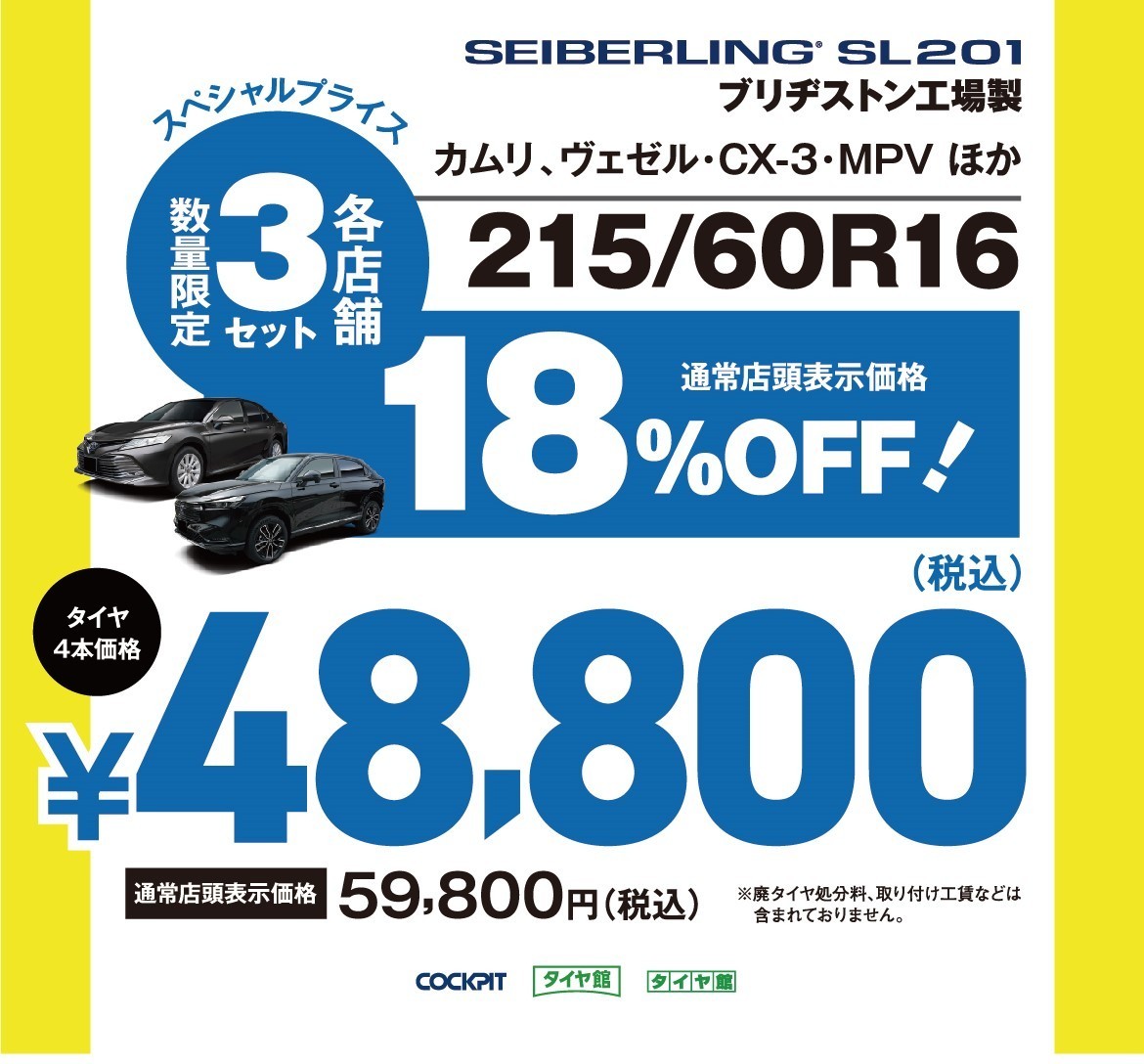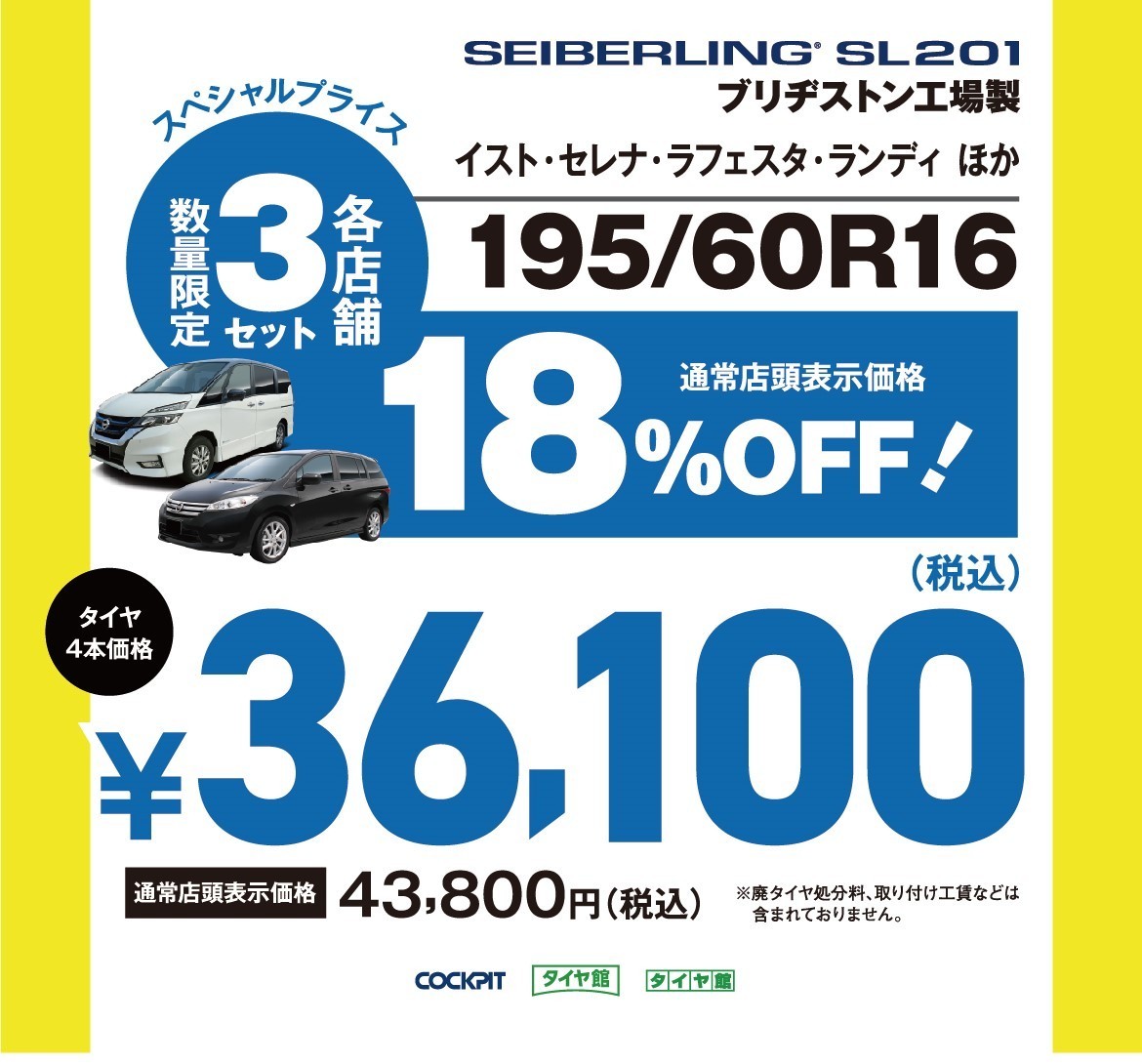 現在、コクピット・タイヤ館の一部店舗におきまして、