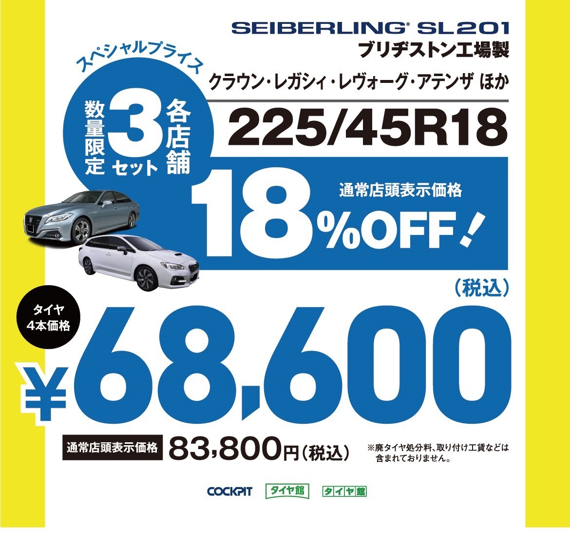 ※廃タイヤ処分料、取り付け工賃などは