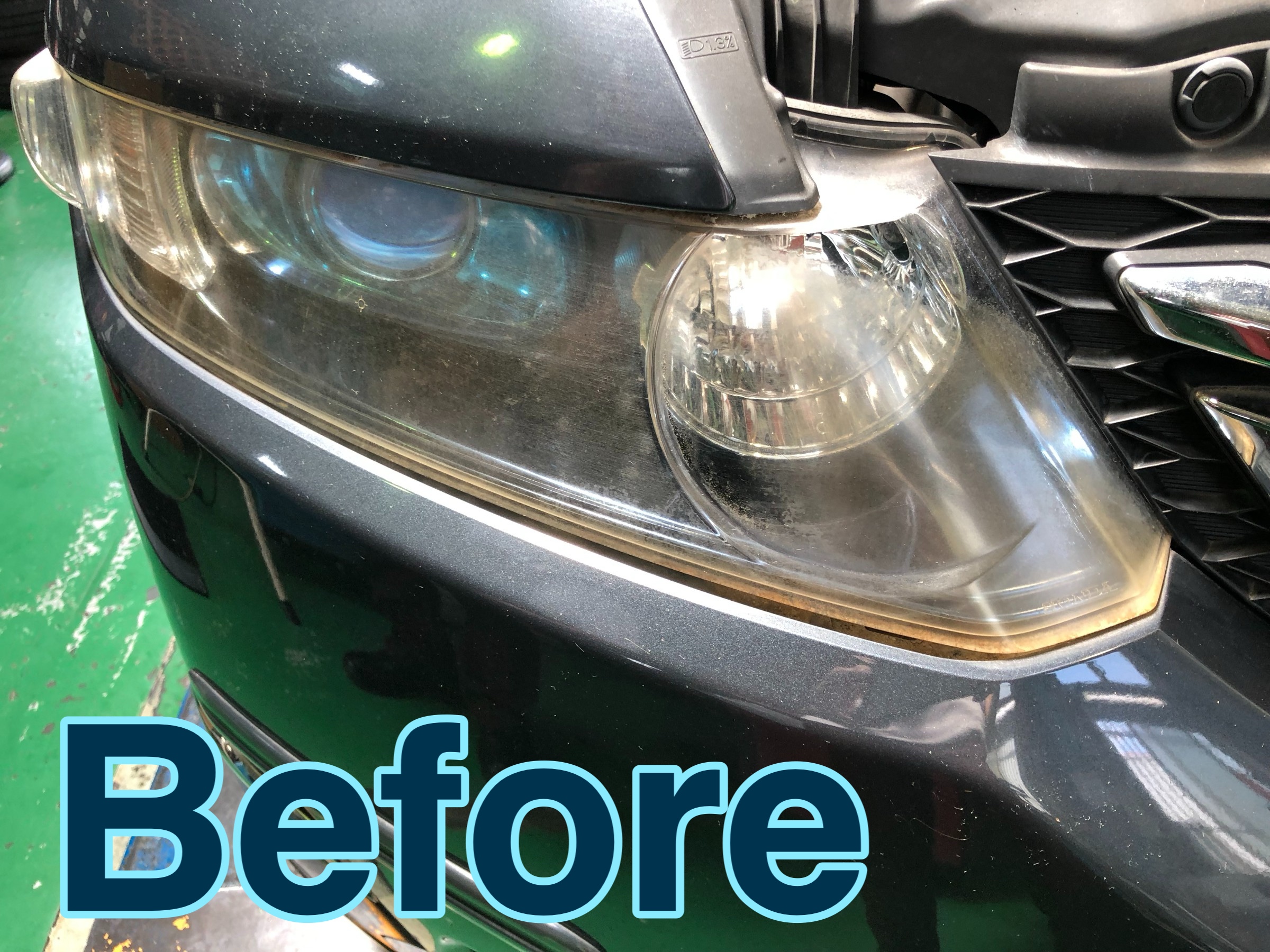 曇ったヘッドライトが...