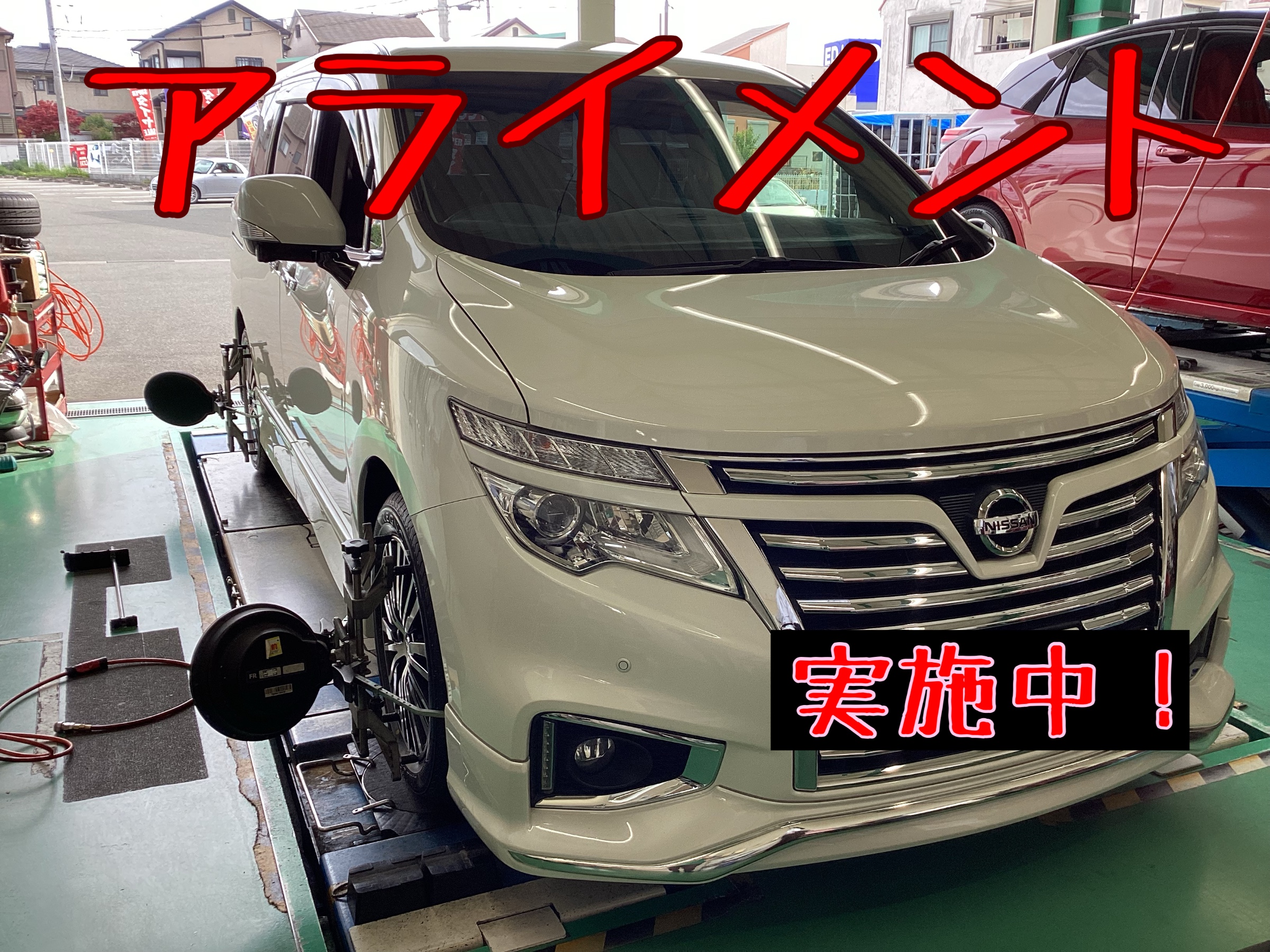 在庫があればラッキー!?【ニッサン エルグランド】タイヤ交換&アライメント