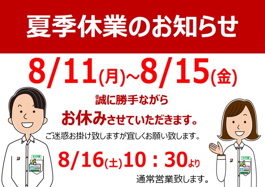 8/11(月)~8/15(金)を夏季休業でお休みさせていただきます。