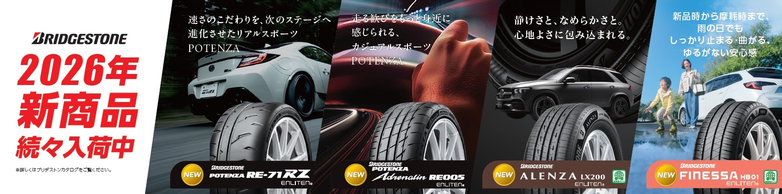 タイヤ館ではブリヂストンタイヤ(当店はブリヂストン直営店です)を始め、
