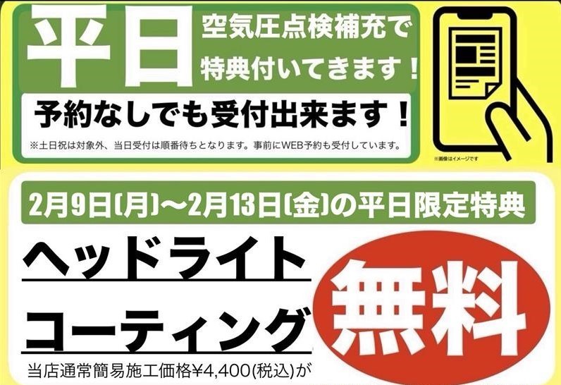 平日限定キャンペーン|ヘッドライトコーティング無料【2/9~2/13】