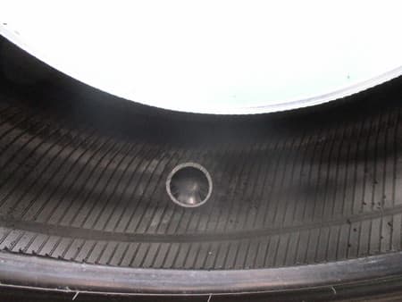 タイヤとホイールをバラシタイヤの内側から修理を行う修理。