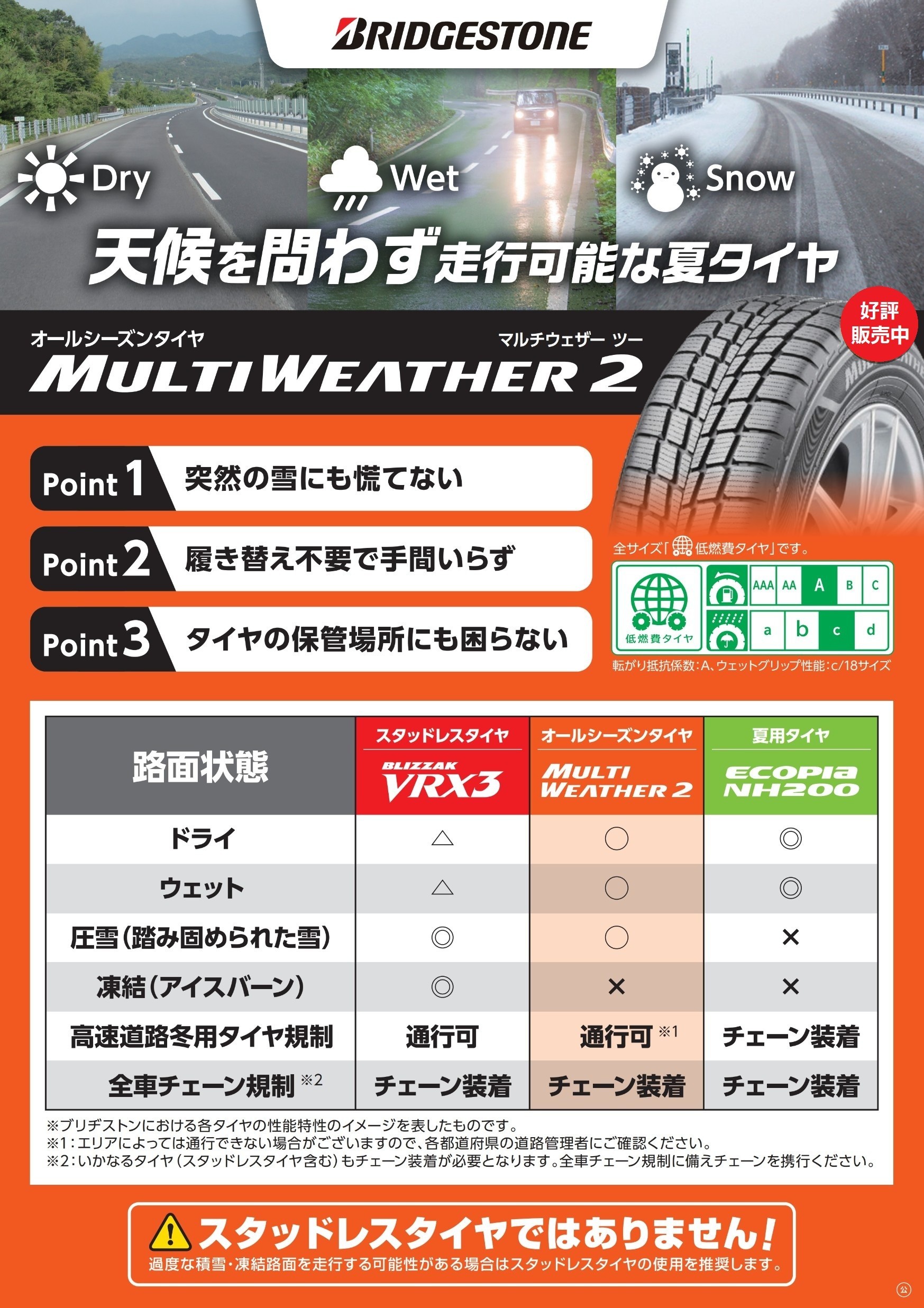 スタッドレスタイヤではありません。