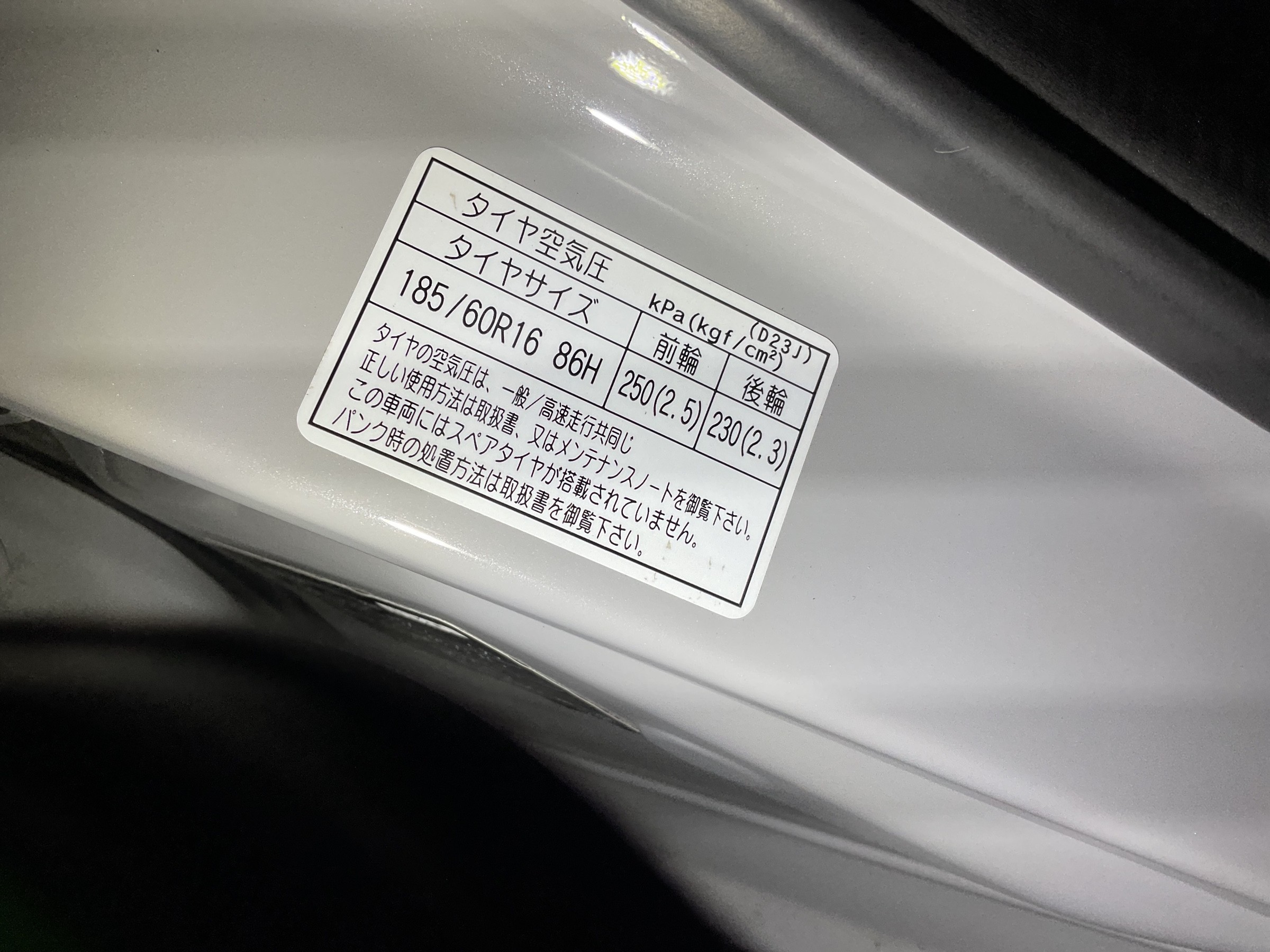 運転席側ドア内表記で確認する方法