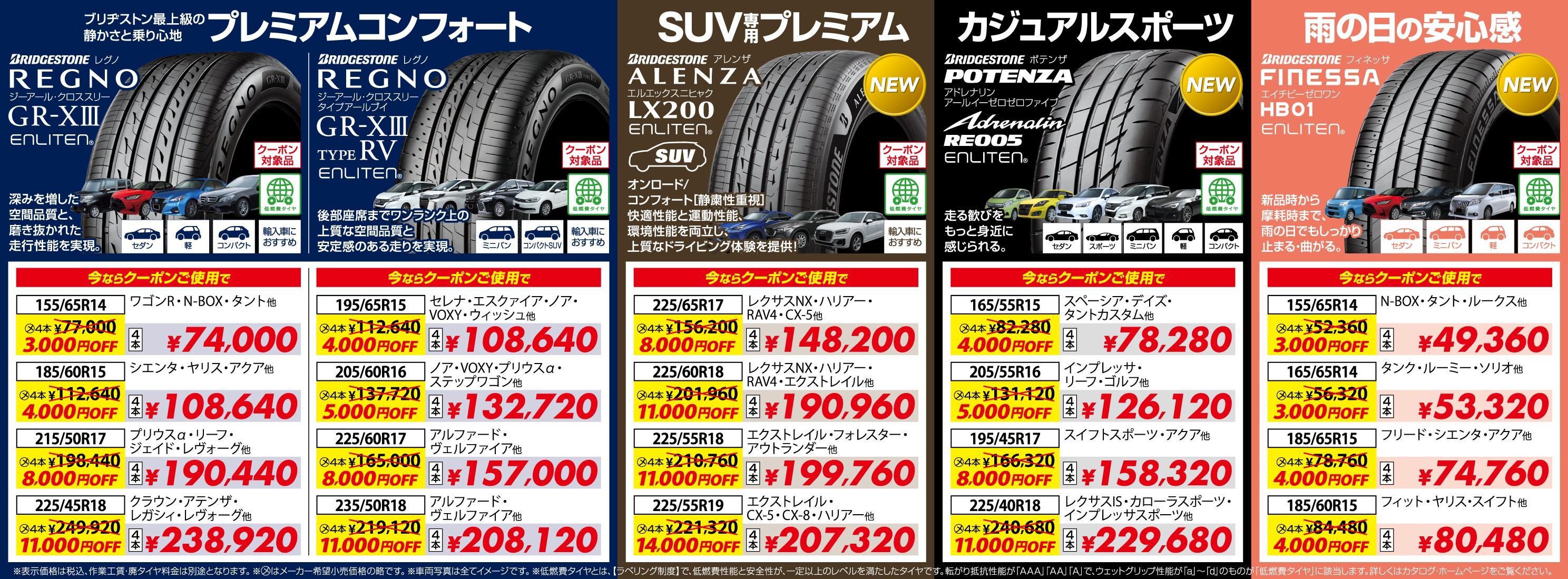ブリヂストンの最新モデルからミニバン・SUV専用タイヤまで幅広く取り揃えています。