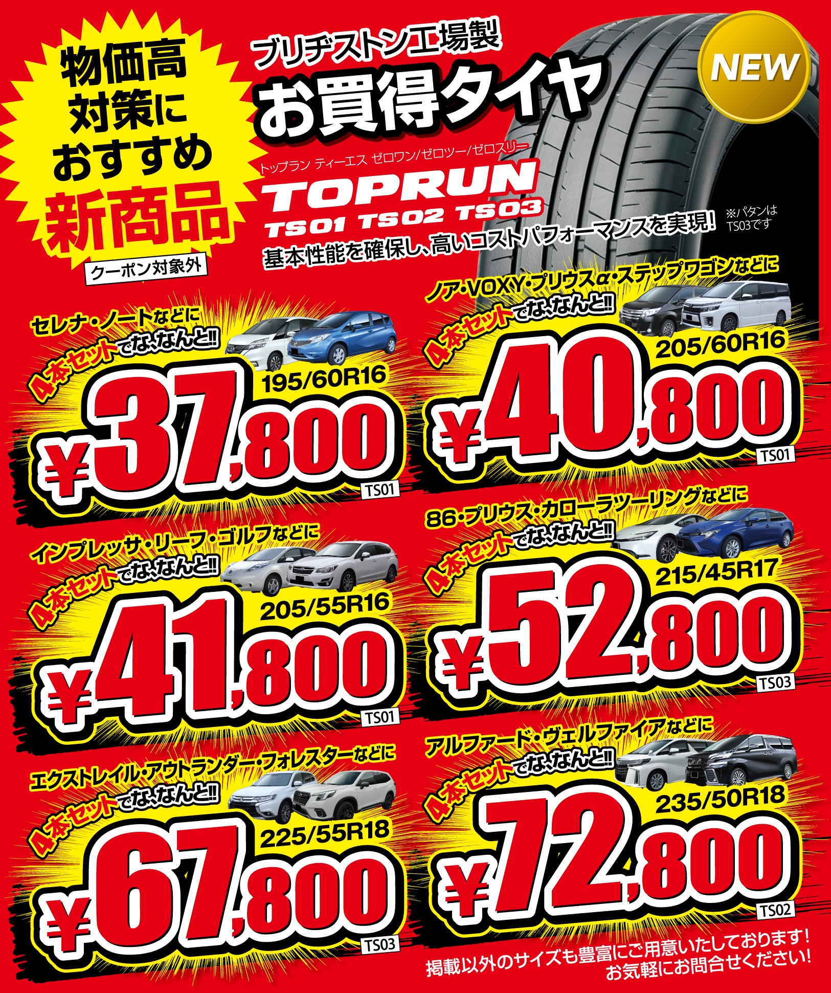 さらに、タイヤ4本交換で使える【タイヤ割引クーポン】を全員にプレゼント。