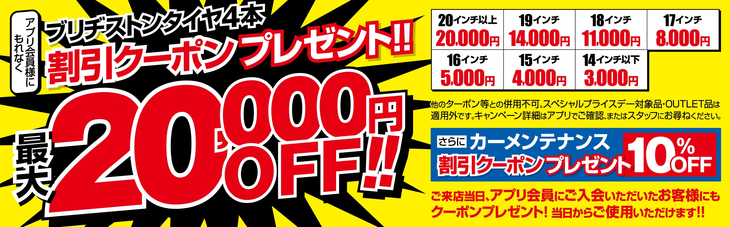 最大20,000円OFF!タイヤ館アプリでクーポンをGET
