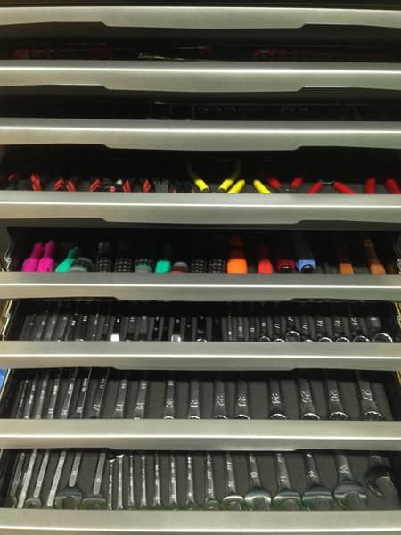 工具BOXに工具を並べるのも一苦労、こうやって並べていると工具の多さにびっくり!!