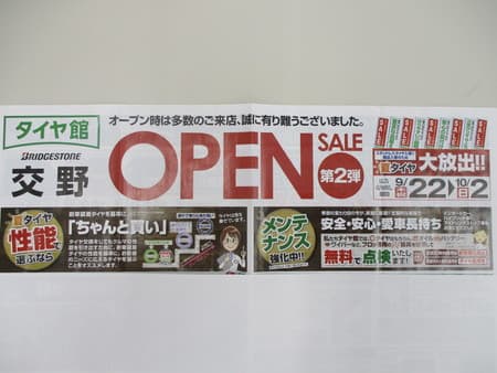 タイヤ館交野店の野村です。