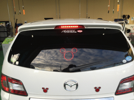 リアガラスに赤いミッキーがいきなり出現するんです!!なぜいきなりかと言いますと!!