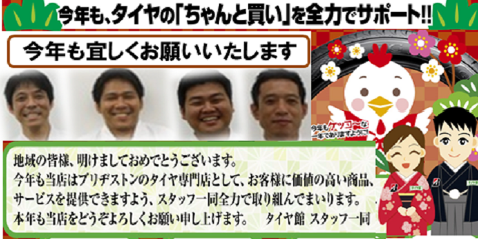 ☆★☆あけましておめでとうございます☆★☆ ポスト 2017年1月3日 旧年は多くの方のご来店誠に有難うございます。 本年も皆様のお役に立てるタイヤ館を目指し。スタッフ一同より一層 の精進していく所存でございます。 本年も皆様のご来店心よりお待ち致しております。 カテゴリ:お知らせ