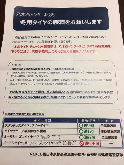 その道中、京都縦貫自動車道で『冬用タイヤ規制』に遭遇しました。