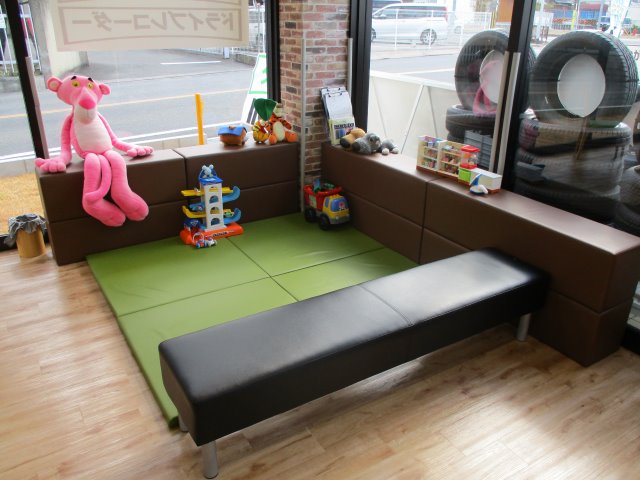 そして当店自慢の快適待ち合いコーナー&でっかいピ〇クパンサーがお出迎えのキッズルーム!