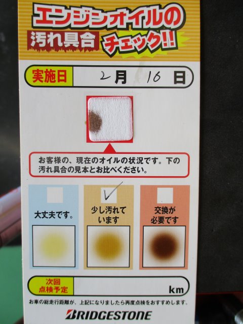 2.エンジンオイル(使用年数・使用距離・汚れ具合・交換距離・油量)