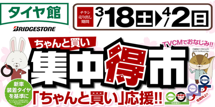 ★☆★今週末からいよいよ集中得市第2弾開催♪♪★☆★ ポスト 2017年3月16日 大好評集中得市が今週末より開催いたします。 セール期間中はお買い得商品盛り沢山!! タイヤはもちろんメンテナンス品もタイヤ館おすすめ商品多数ご用意!! さらに今回はタイヤ4本購入でインスタントラーメンプレゼント!! タイヤ交換は是非この機会ご利用下さい!! 担当:厨子