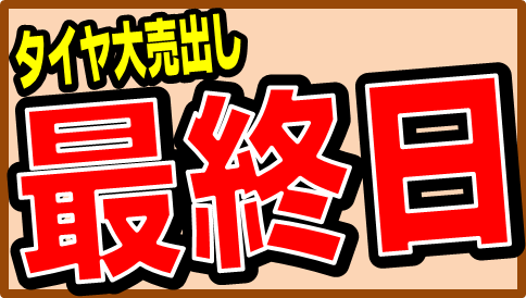 ☆タイヤ大売出し 最終日☆ ポスト 2017年4月17日 おはようございます!(^^)!** 今日はタイヤ大売出し最終日となっております!! この機会を見逃すのはもったいないですよ(T_T) 値上がり前のセールで買わなきゃいつ買うの!? 是非、お客様のご要望・ご予算を私達にぶつけて下さい(*^_^*) 担当:高橋