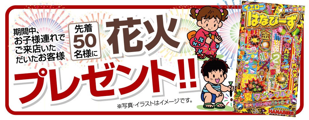 お子様には先着50名様限定で花火がもらえちゃいますっ(>▽<)♪