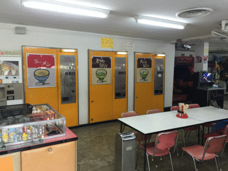 うどんが2台・ラーメンが2台・ビンの販売機が1台・