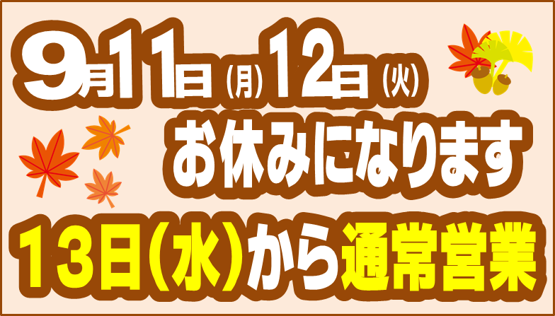 ☆★☆11日(月)12日(火)お休みさせて頂きます☆★☆ ポスト 2017年9月10日 いつもタイヤ館交野をご利用頂き誠にありがとうございます。 11日(月)12日(火)は誠に勝手ながらお休みさせて頂きます。<(_ _)> 13日より通常営業 朝10時オープンさせて頂きます。 皆さまのご来店どしどしお待ちしています!!\(^o^)/ 担当:厨子