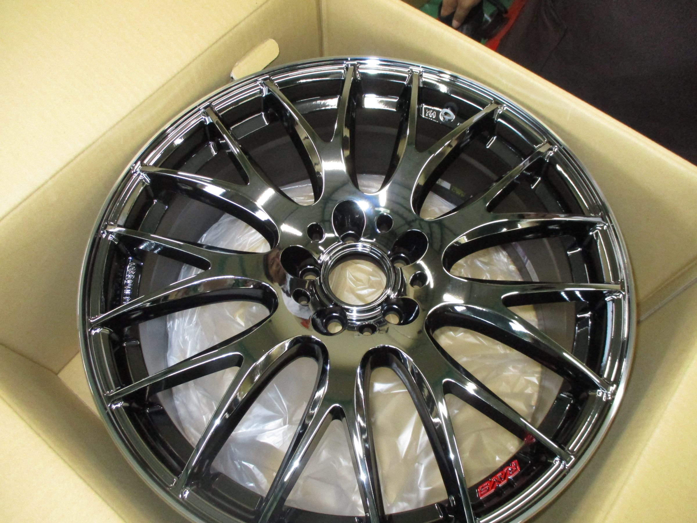 「レイズ マホラ2×9」の19インチにです!交換後は、、、、、っとこんな感じです!そして先に取りつけが済んだ同じく「ノブレッセ」のエアロ3点キット、LEDバックフォグ、