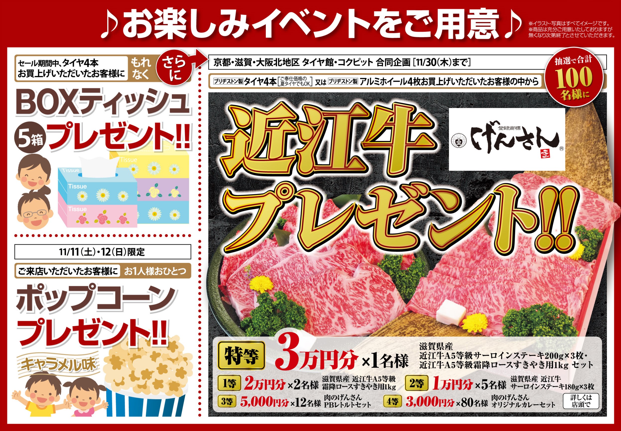 「オープン一周年セール」二日目突入(*^_^*) ポスト 2017年11月12日 昨日は「タイヤ館 交野 オープン一周年セール」に沢山のご来店ありがとうございました!! 本日11/12(日)も、もちろんバリバリ元気にセ~ルを行なってま~す(^^♪ ポップコーンのプレゼントは本日11/12(日)までとなっておりますので皆さまのご来店お待ちしております!!