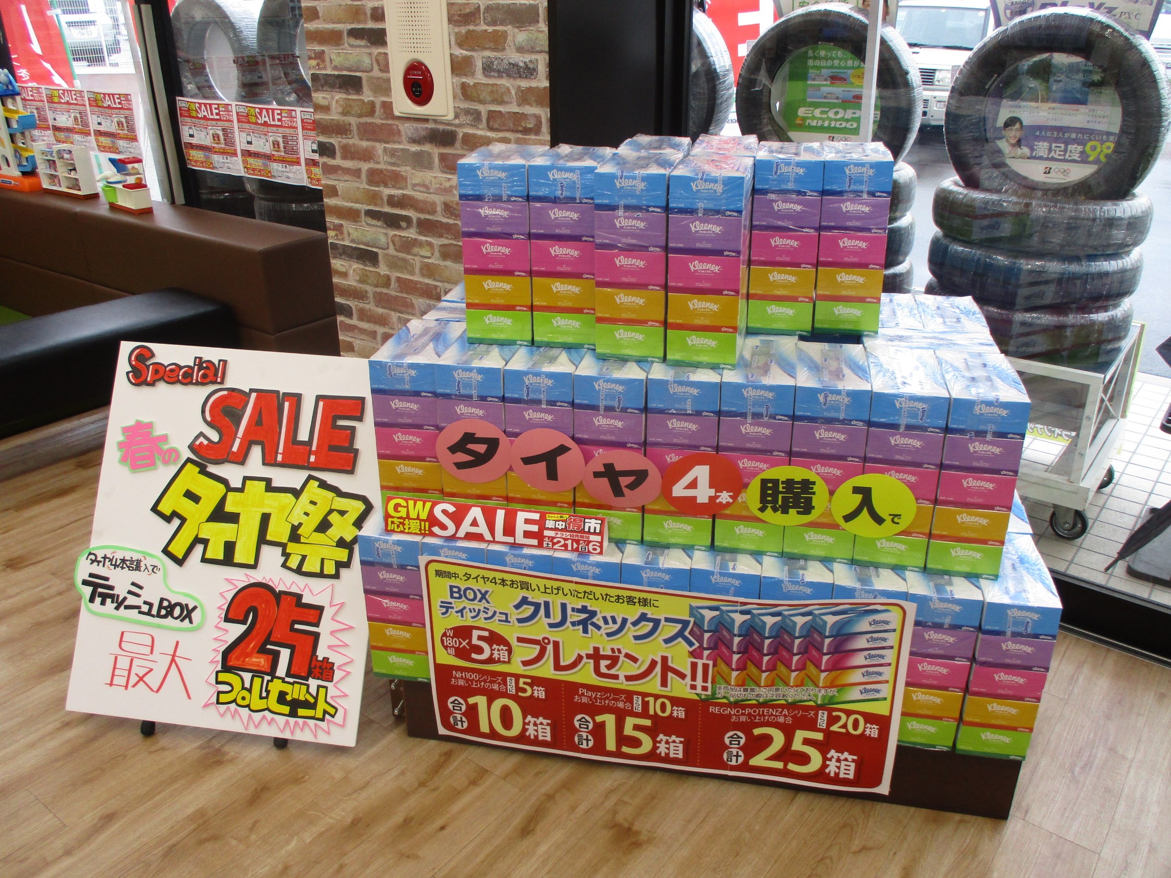 引き続き、タイヤ4本交換の方へBOXティッシュを最大25箱プレゼント★