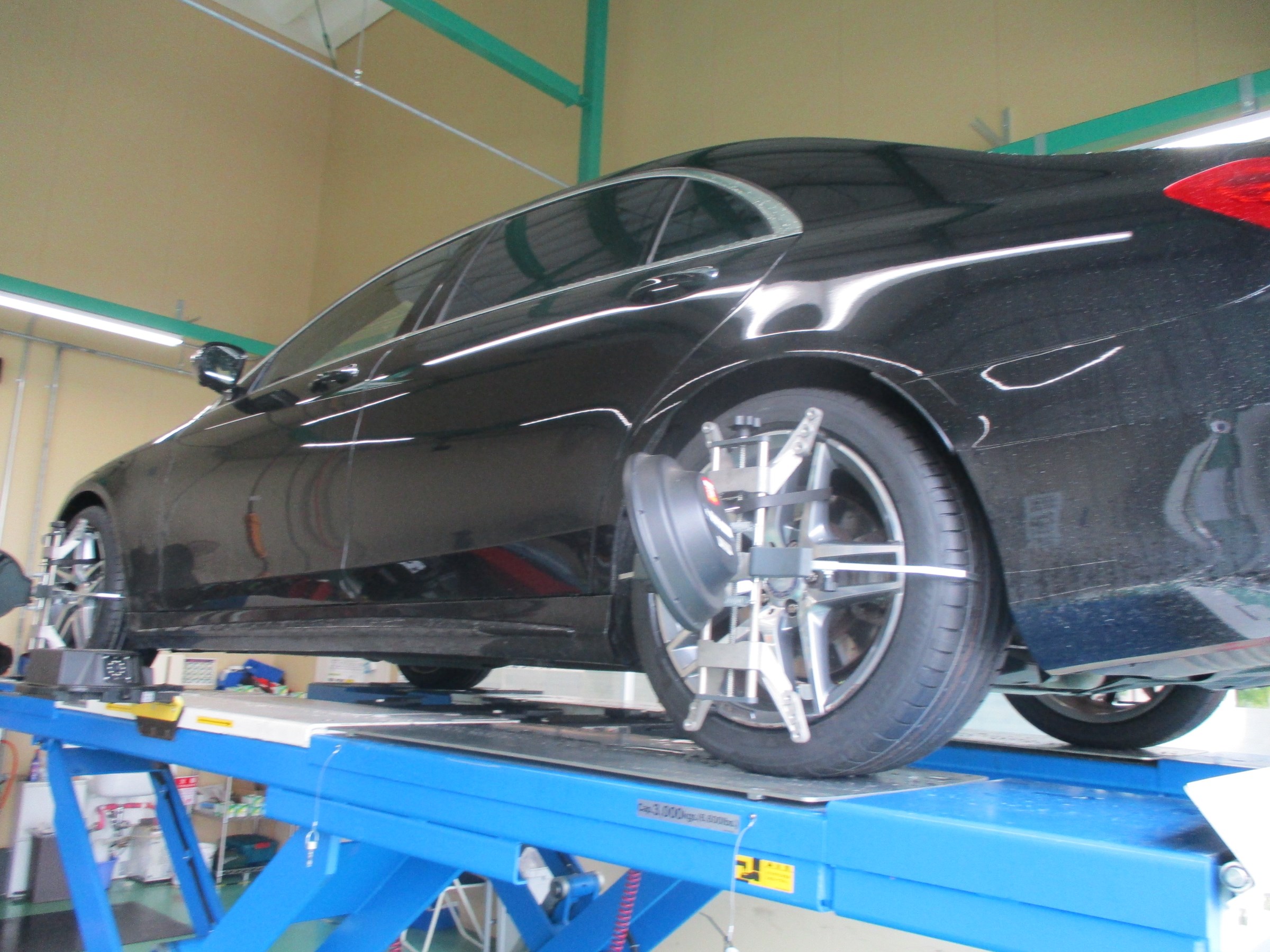 本日はベンツSクラスのタイヤ交換とアライメントの作業です。