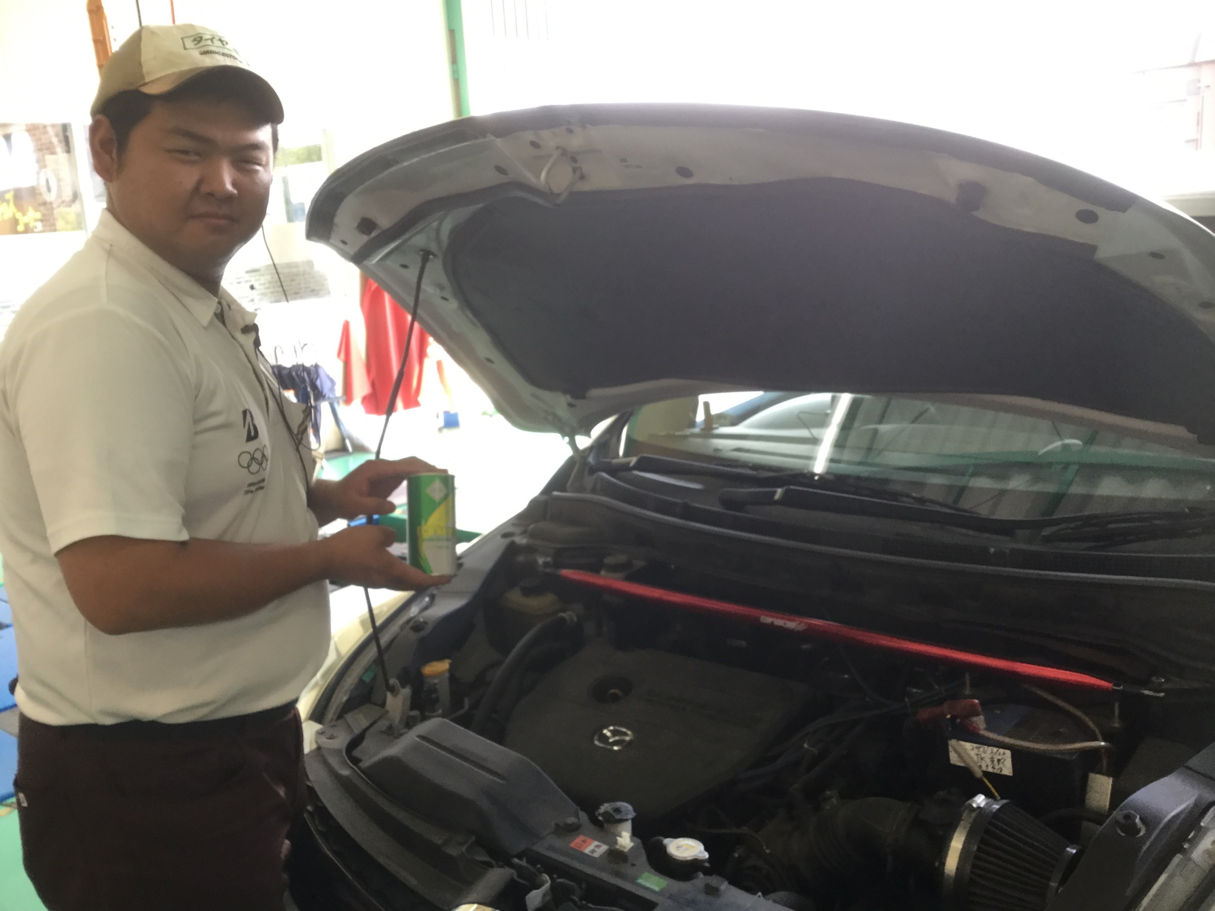 ミッキースタッフが持っているのがエンジン内部洗浄剤です。