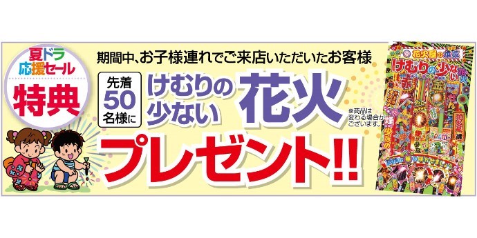 お子様連れのお客様に先着で差し上げております花火も、残り少なくなってきておりますので