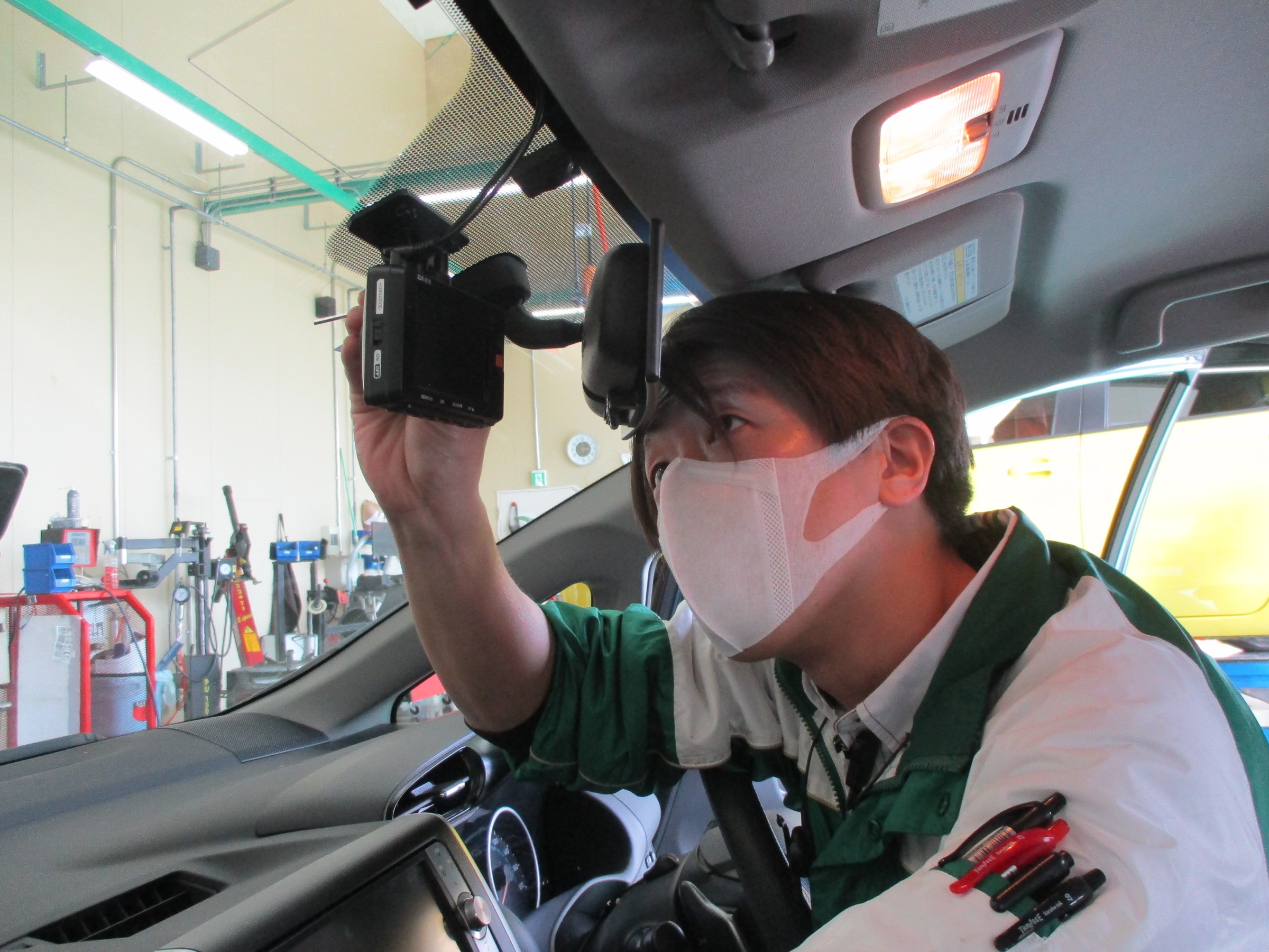 今日は、最近話題のドライブレコーダーの取り付けです。