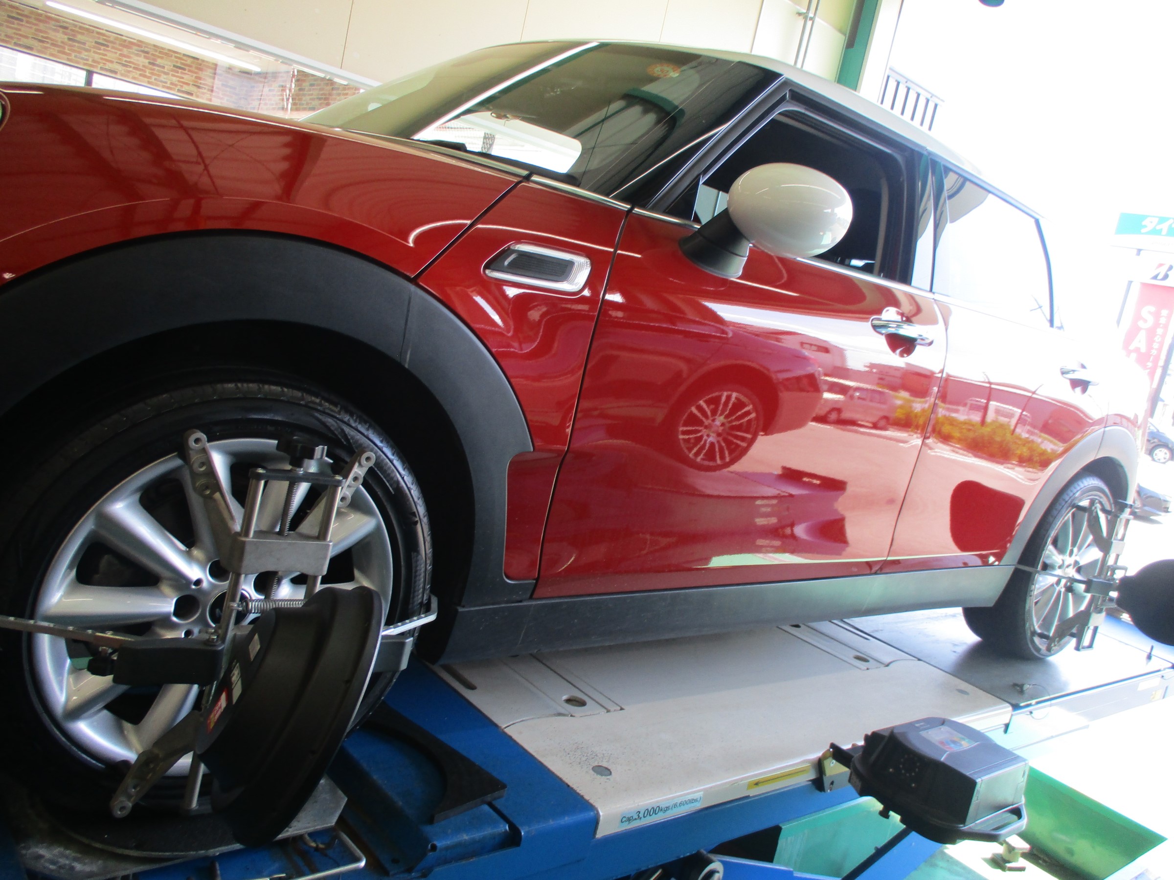 本日はMINIのタイヤ交換とアライメントの作業です。