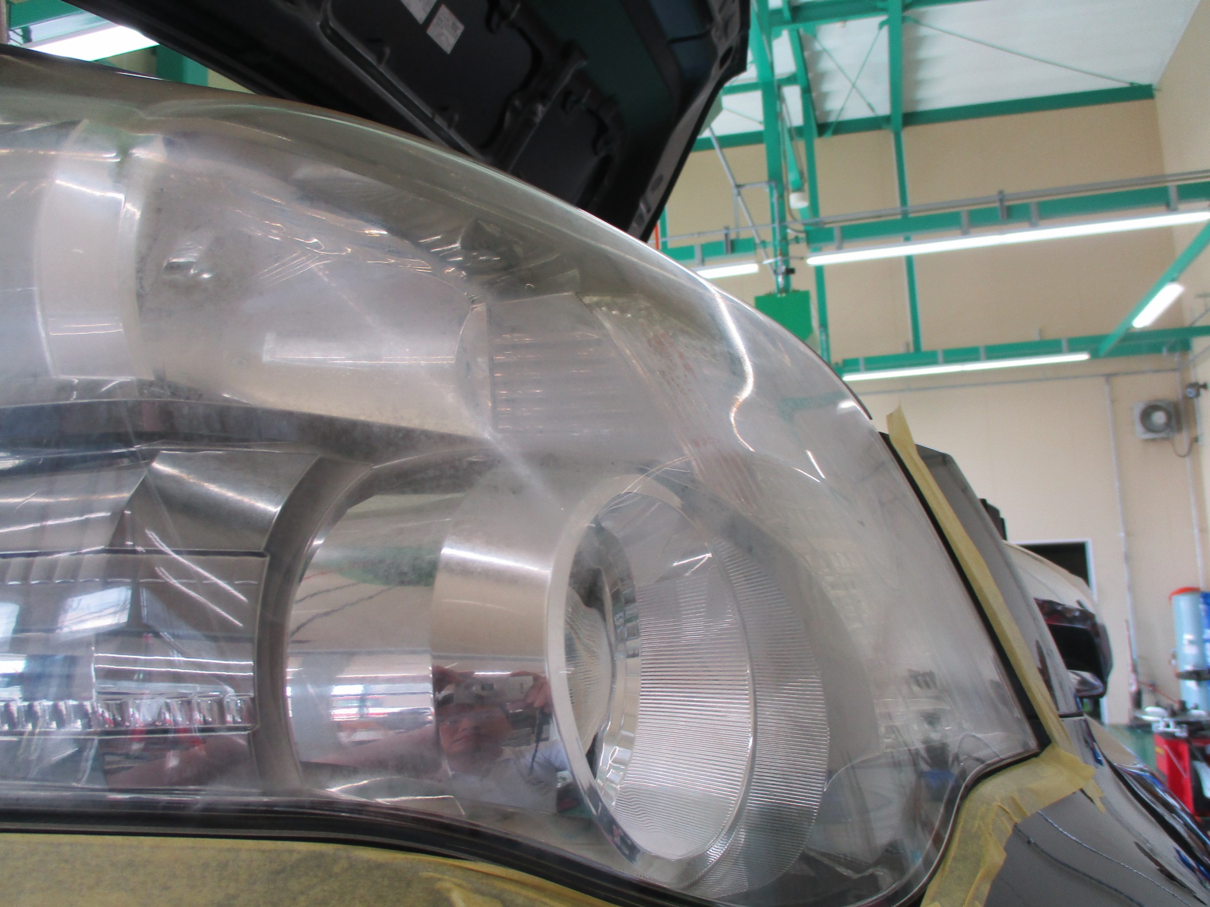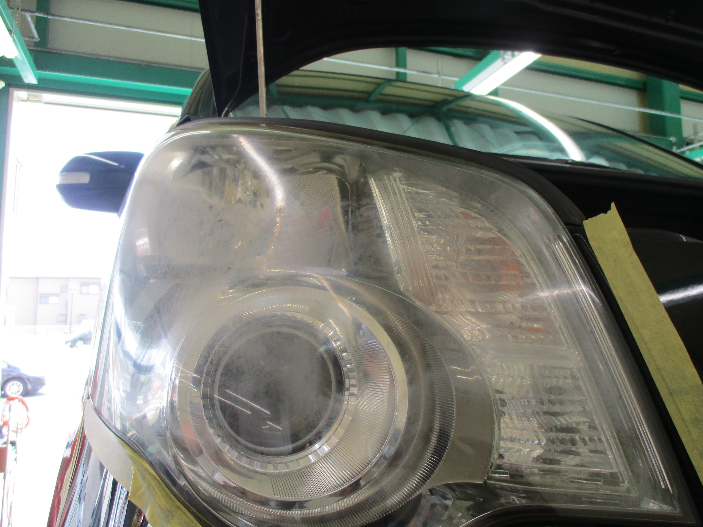 施工前↓(ここまで曇ると、ヘッドライト内で光が反射したり、弱くなったりし暗くなります)