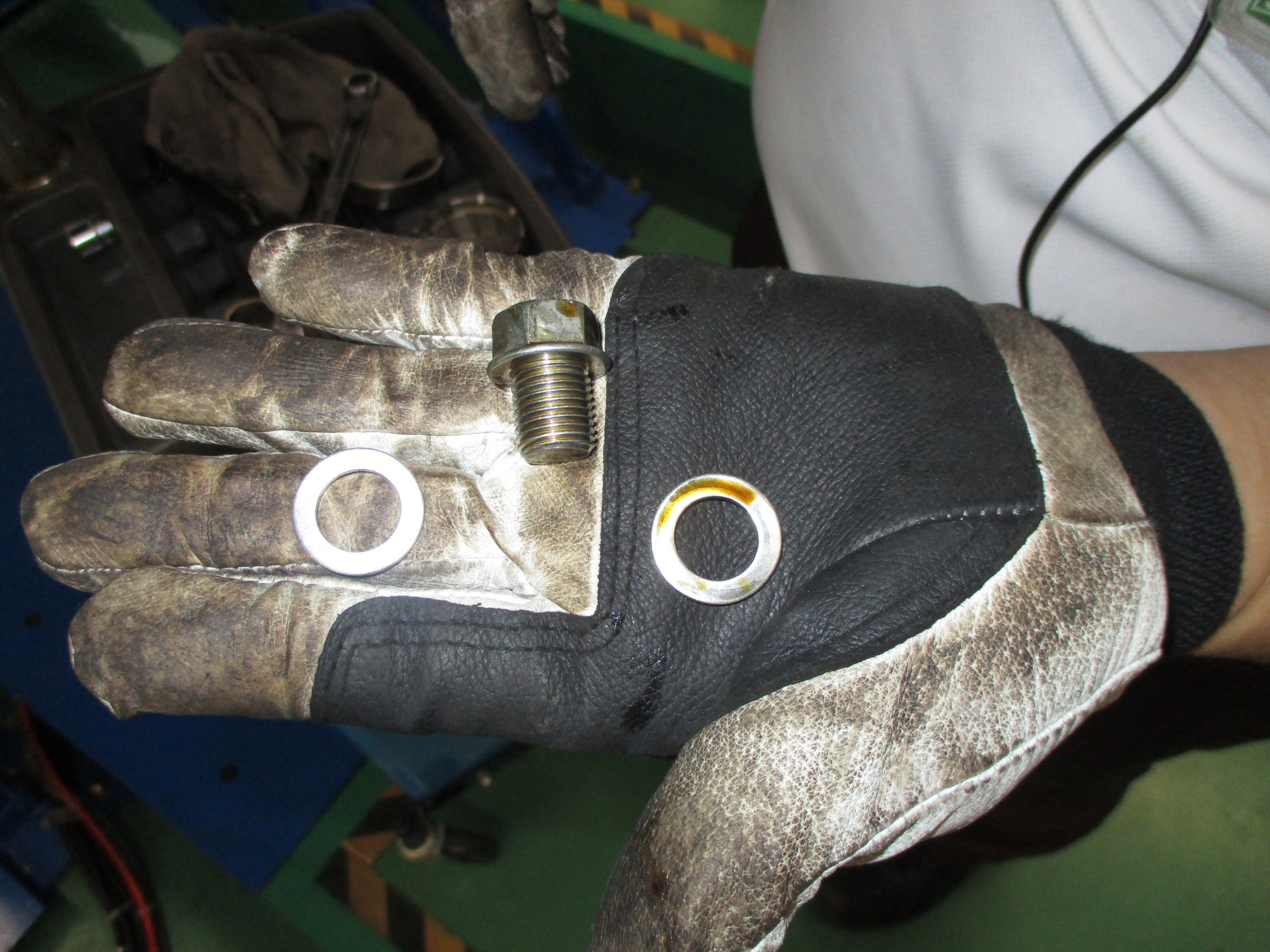 このようにドレン(写真真ん中)をとってオイルを抜くのですが、