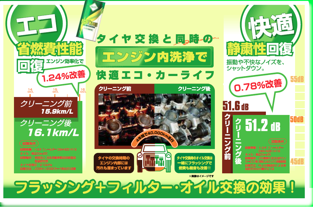 OIL交換だけだと実は、エンジン内部は汚れたままで燃費の悪化に繋がるんです。