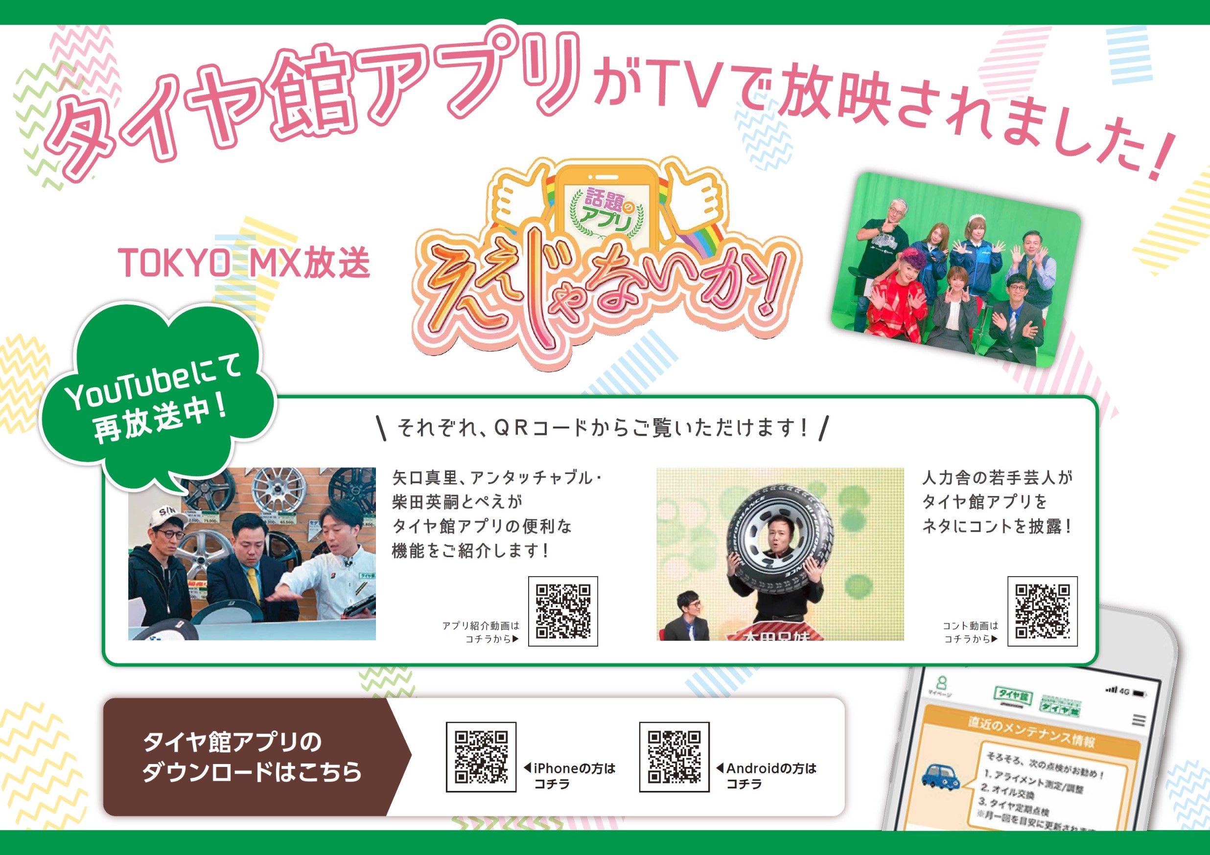 今回はなんと・・・タイヤ館アプリがTVで放送されたんです!