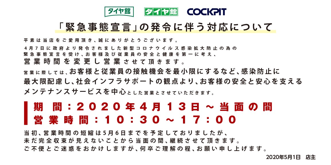 営業にあたり、少人数での営業の為、お客様にご不便おかけする場合がございます。