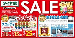 いつもごらん頂きありがとうございます!タイヤ館交野店では 【GW応援フェアセール集中得市第2弾】 開催中!5/6まで!お急ぎ下さい^_^お得な時期となっておりますよ♪タイヤを換えるなら今がチャンスです! 今回のセールでは、ななななんと・・・BOXティッシュプレゼントが有ります!期間中タイヤ4本...