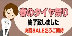 8日間にわたって開催していました【春のタイヤ祭り】も本日とうとう最終日を迎えました。 このお買い得な期間まだご来店できていないお客様は是非本日ご来店下さい!! お手頃品タイヤからハイスペックタイヤまで幅広いブリヂストンタイヤを多数取り扱い お客様のニーズ・ご予算に合ったタイヤがきっ...