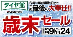 セール期間中は本当に多くのご来店有難う御座いました。 お買い得商品盛り沢山だった今回のセール皆さんに喜んでいただけたこと間違い無しと思っています。 タイヤ館交野は年内30日まで休まず営業しております。 100km点検・帰省前点検・空気圧点検是非お気軽にご来店下さい。