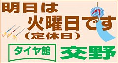こんにちは!!ミッキーです!! 最近、寒くなってきましたね~ 寒くなってくるとタイヤの空気圧が減ってタイヤの性能が100%発揮できず、 しかも!!タイヤが早く減ってしまうんです!! 寒くなってきたらタイヤ館で空気圧点検!! そして、出かける前に無料の安全点検で安心・安全に旅行へGO!! 僕の愛車...