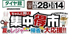 タイヤ館 交野店は今日も元気に営業致しますっ\(^o^)/♪ 現在大好評の「集中得市」が今日含め残り3日となりました・・・(・_・) 日数は少なくなっていますがどんなことでもお問い合わせ下さい** 高速道路に乗る前に空気圧の点検を行い、空気圧不足で走らないように 心がけましょう(*^^)v お盆で...