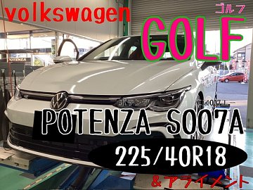 おはようございます☆ タイヤ館交野店のHPを ご覧いただきありがとうございます。 本日ご紹介させていただくお車&作業は 【フォルクスワーゲン ゴルフ】 タイヤ交換&アライメントです♪ いつも当店をご利用いただいており タイヤのご相談にご来店いただきました。 タイヤもポテンザS007A 指名でお見...