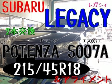 おはようございます☆ タイヤ館交野店のHPを ご覧いただきありがとうございます。 本日ご紹介させていただくお車&作業は 【スバル レガシィ】 タイヤ2本交換&アライメントです♪ パンクされご来店いただきました。 後輪をパンクされており、 前輪のタイヤの溝はある為、 今回は減っている後輪の2本...