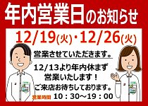年末まで休まず営業中!!皆様のご来店お待ちしております!!