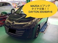 いつもタイヤ館交野店をご利用頂きありがとうございます!! 今回紹介させて頂くのはコチラ!!! 【MAZDA ビアンテ】タイヤ交換 です!!! お取り付けさせて頂くタイヤはDAYTON 205/60R16です!! 米国/欧州で展開する基本性能とコストパフォーマンスを重視したラジアルタイヤです。 デイトンは元...