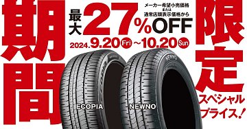 いつもタイヤ館交野店ホームページご覧頂き、ありがとうございます! 10月のイベントは 【期間限定スペシャルプライスセール】です♪ 年数が経ち、ひび割れがあるお車は 要点検!! タイヤやバッテリーもこの暑さでバテバテ!? お車の愛車点検お待ちしております! タイヤ交換やメンテナンス用品が...