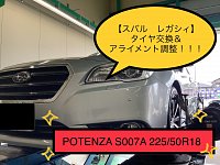 【スバル レガシィ】タイヤ交換& アライメント調整!! POTENZA S007A 225/50R18!!